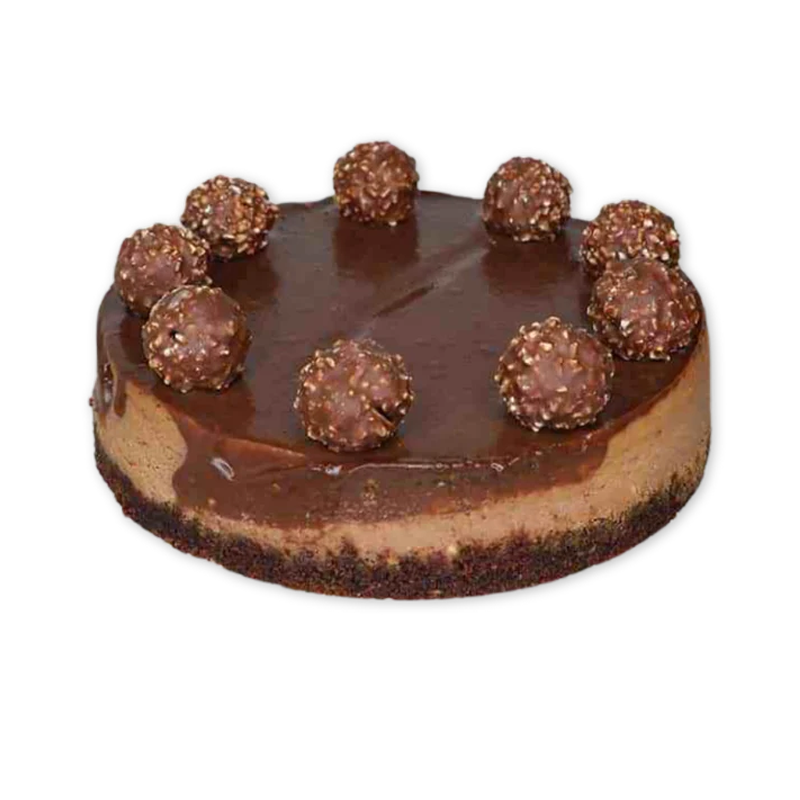 It’s made for Ferrero Rocher and chocolate lovers. Belgium milk chocolate mascarpone cheesecake mix of Frangelico liquor and hazelnut grains. Finished with Ferrero Rocher milk chocolate ganache.