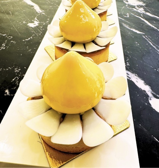 The Praline Made with Canadian Local Farm Sunflower Seed and Mango Tart is a unique and flavorful dessert that features a rich, nutty praline made from locally sourced sunflower seeds. This praline is paired with a vibrant, tropical mango filling in a crisp tart shell. The combination of the crunchy, nutty praline and the smooth, fruity mango creates a delightful contrast of textures and flavors, showcasing the best of Canadian ingredients in an elegant tart.